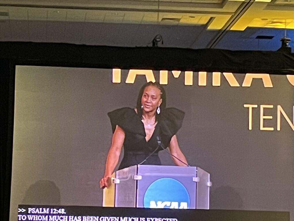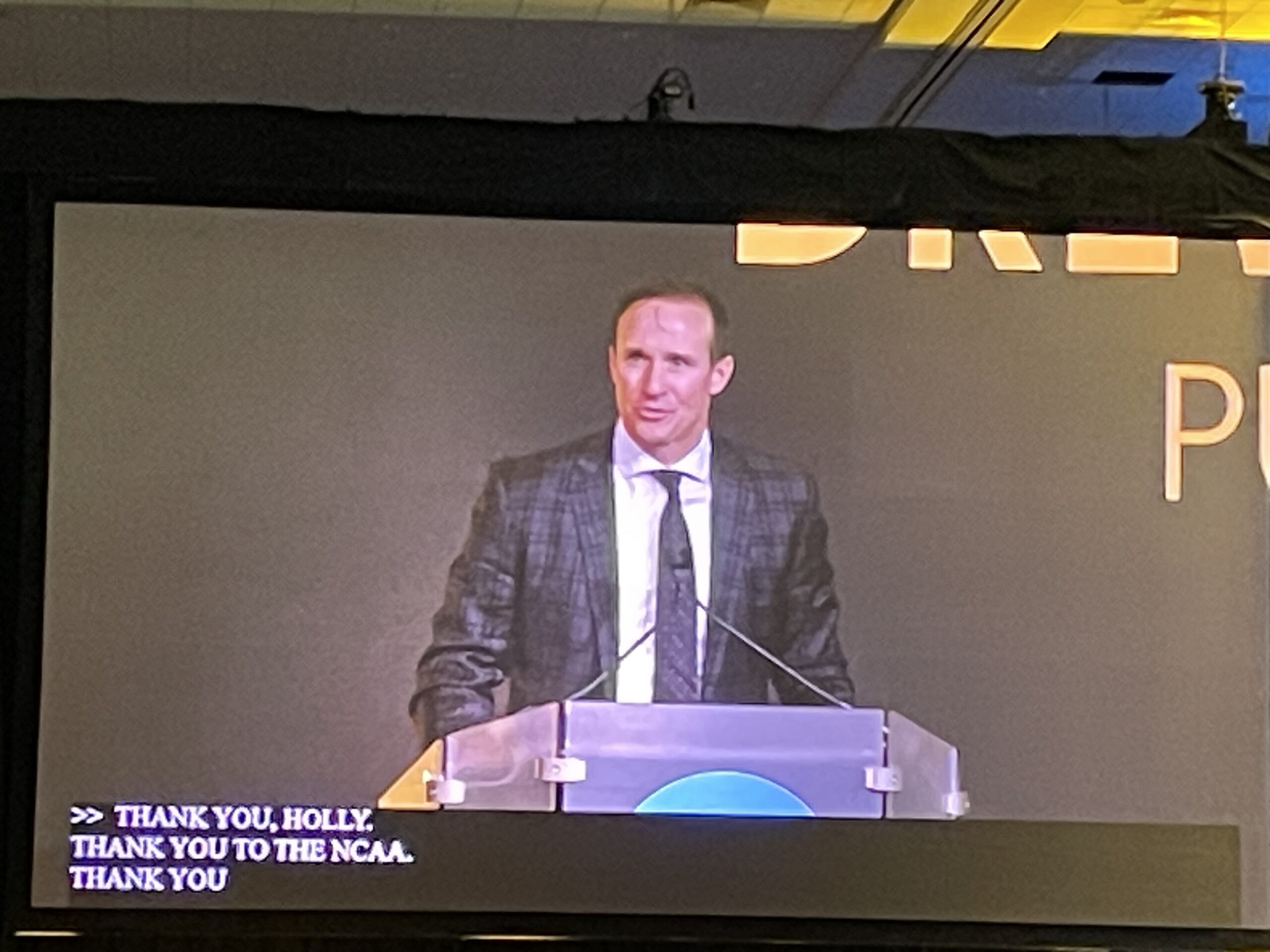 The most inspiring part of the day was the NCAA Honors event in the evening. My main reasons for attending were to see 2 of the Silver Anniversary Award recipients: 1 basketball player whom I have interviewed in the past (former Tennessee 4-time All-American Tamika Catchings) and 1 football player who you might have heard of (former Maxwell Award winner Drew Brees):
