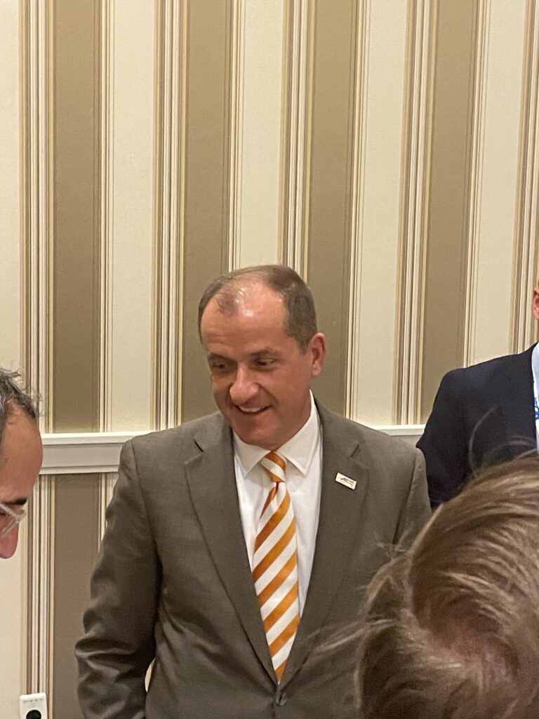 I left the program early to join the “media scrum” featuring NCAA President Charlie Baker (left) and ACC Commissioner Jim Phillips (right). I got to meet them both very briefly, and they were very nice…but sadly they only had a few minutes to spare so there was not enough time for me to ask them any questions: