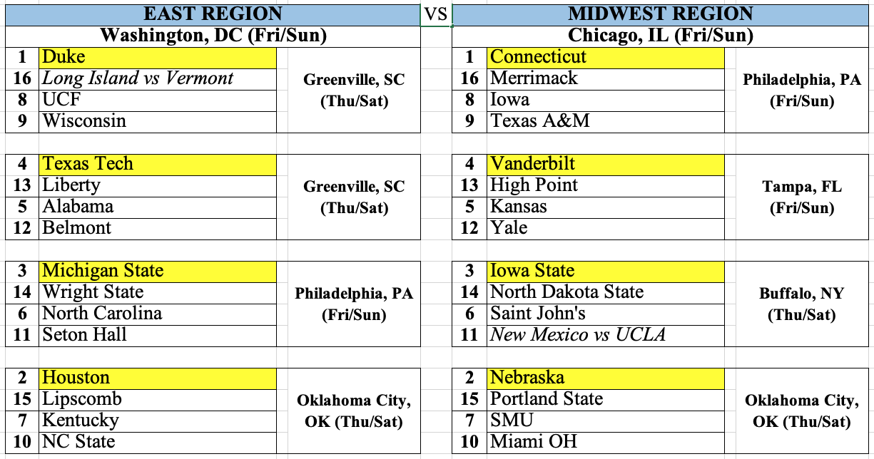 We are 7 weeks away from Selection Sunday as we continue to make our NCAA tourney predictions. HoopsHD’s Jon Teitel correctly picked 66 of the 68 teams that made the 2025 tourney: 62 of his 66 were within 1 spot of their actual seed and 52 were right on the money. He will spend the upcoming months predicting which 68 teams will hear their names called on March 15th. See below for his list of who would make the cut if they picked the field today and if you agree or disagree then feel free to tweet us. To see how he stacks up with other websites (ranked 7th out of 186 bracket veterans over the past 5 years), check out: www.bracketmatrix.com