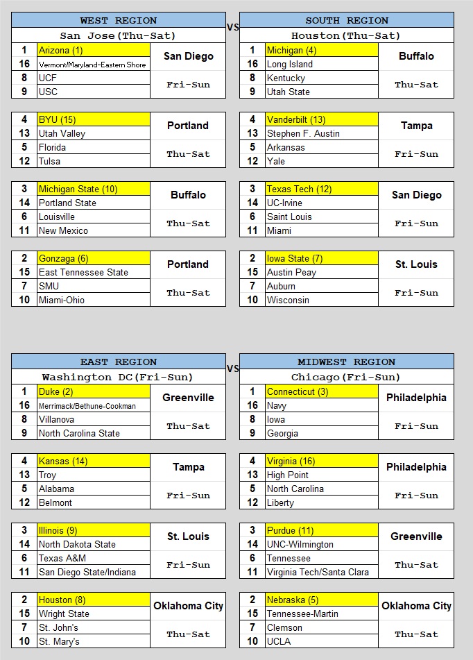 – An argument could be made for Vandy that they could be a seed line higher after throttling Kentucky at home. Despite a brief lapse during January, the Commodores are now 8-2 away from home. While Chad likely docked them a bit for their loss at Texas, I do not see how BYU is as low as a 4 seed. The Cougars do not have any bad losses and also have 3 wins against teams away from home that could likely be NCAA Tournament bound.