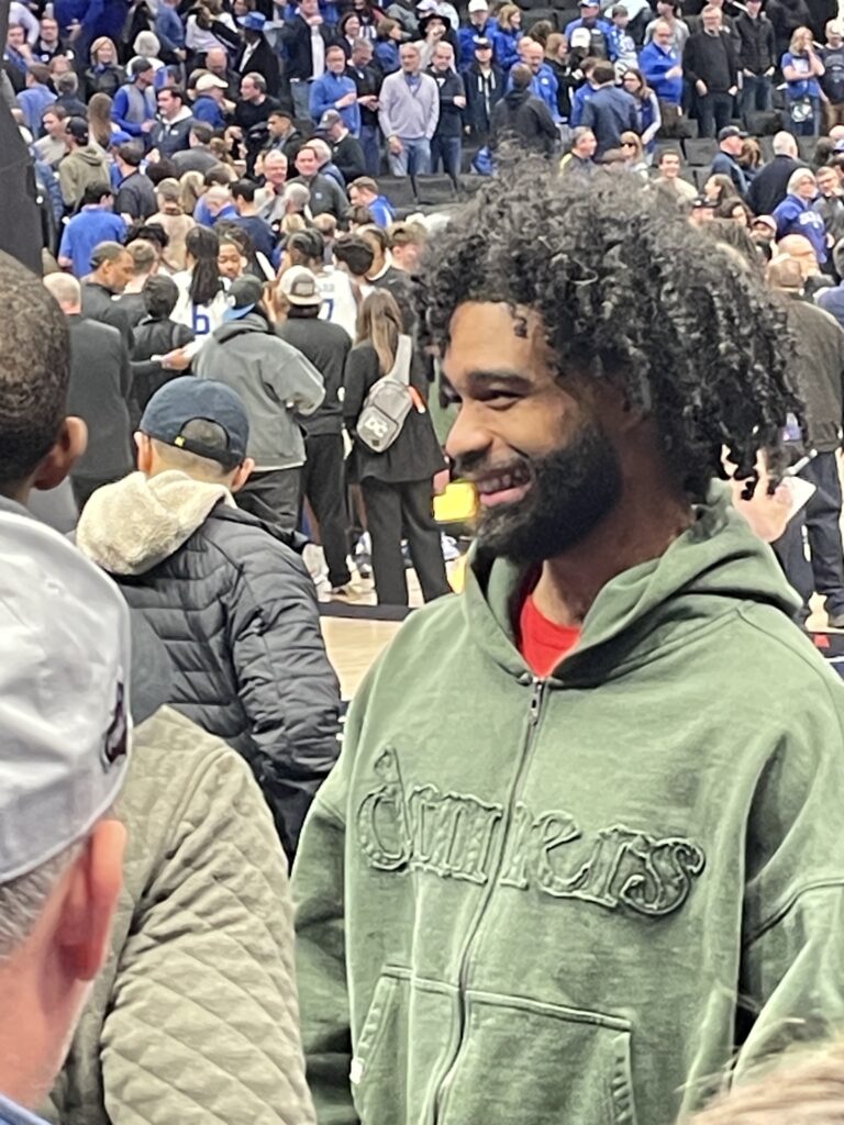 The 1st half was the Yaxel Lendeborg show, as the Michigan star made a bank shot, a pair of layups, an old-fashioned 3-PT play, and a pair of shots from behind the arc to lead the way with 16 PTS as his team built an early lead. However, Duke G Caleb Foster knocked down back-to-back 3s to give his team a 22-21 lead, and the 2 heavyweights went back and forth before we headed into halftime with Duke leading Michigan 35-33. Patrick Ngongba did a lot of damage inside during the 2nd half on a pair of layups and an alley-oop dunk, while Cameron Boozer did a little bit of everything all night long (18 PTS/10 REB/7 AST/2 BLK/1 TO) to help the Blue Devils knock off the top-ranked Wolverines 68-63. After heading down to the court I FINALLY saw some people I recognized including former Duke star Kon Knueppel (left) and former UNC standout Coby White (right):