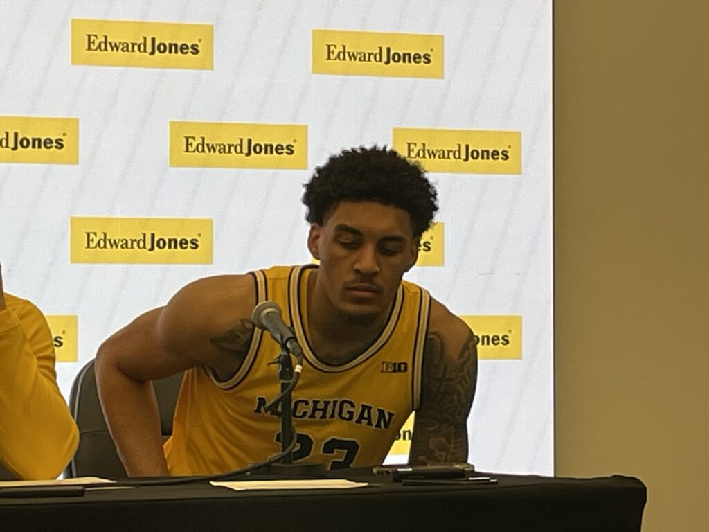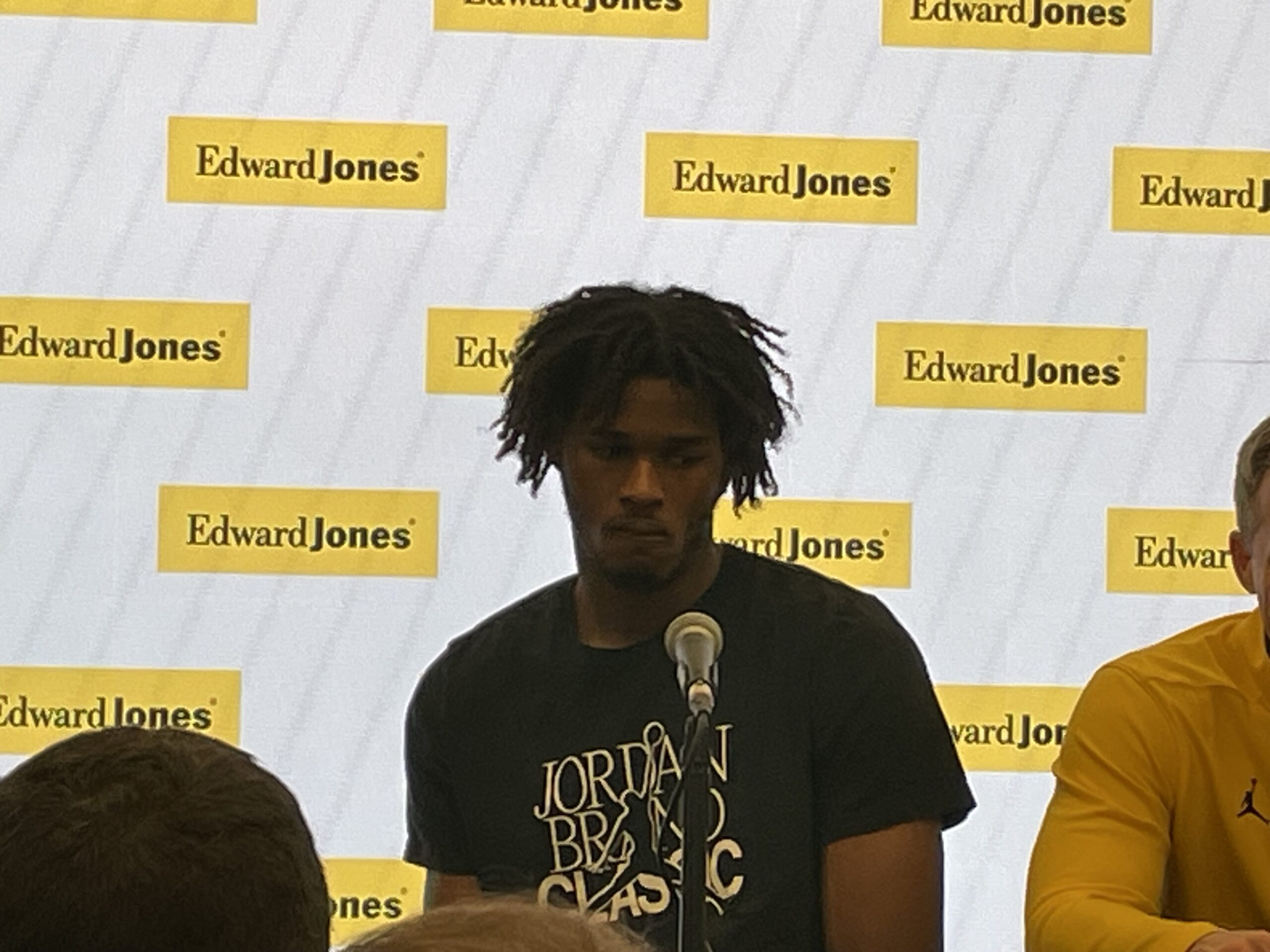 In the postgame press conference I asked Lendeborg and his fellow big man Morez Johnson Jr. about getting outrebounded 41-28. Morez (left) said that it was due to their fellow/even-taller big man Aday Mara getting into foul trouble (the 7’3″ Spaniard only played 22 minutes due to picking up 4 fouls), but that they still needed to step up as a team. Yaxel (right) confirmed that Aday grabs so much attention that missing him on the floor was a really big hit for the team: