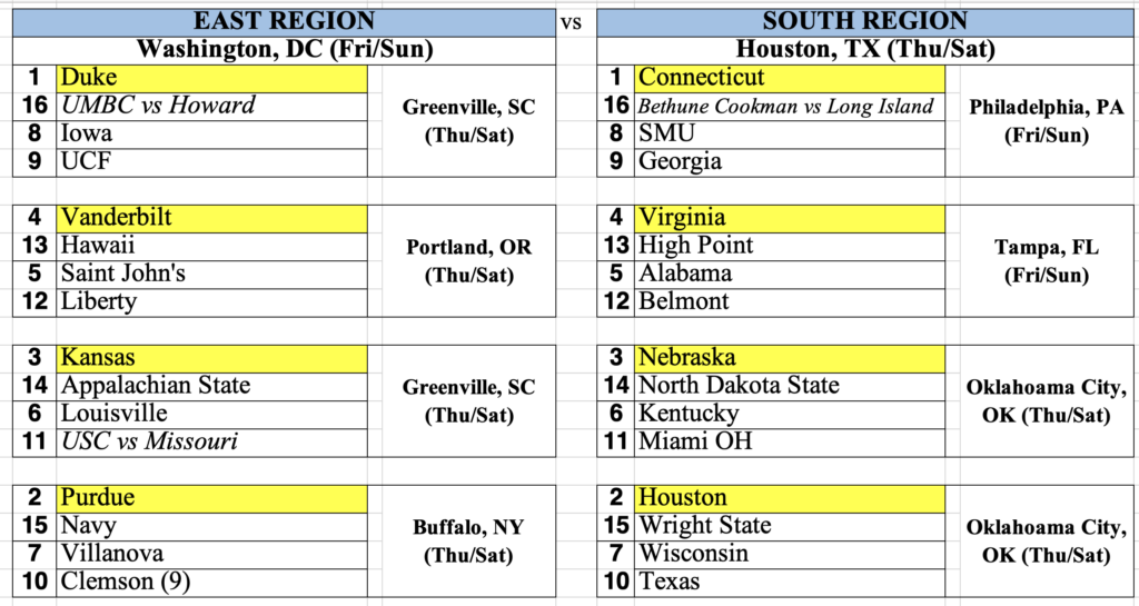 We are 3 weeks away from Selection Sunday as we continue to make our NCAA tourney predictions. HoopsHD’s Jon Teitel correctly picked 66 of the 68 teams that made the 2025 tourney: 62 of his 66 were within 1 spot of their actual seed and 52 were right on the money. He will spend the upcoming weeks predicting which 68 teams will hear their names called on March 15th. See below for his list of who would make the cut if they picked the field today and if you agree or disagree then feel free to tweet us. To see how he stacks up with other websites (ranked 7th out of 186 bracket veterans over the past 5 years), check out: www.bracketmatrix.com