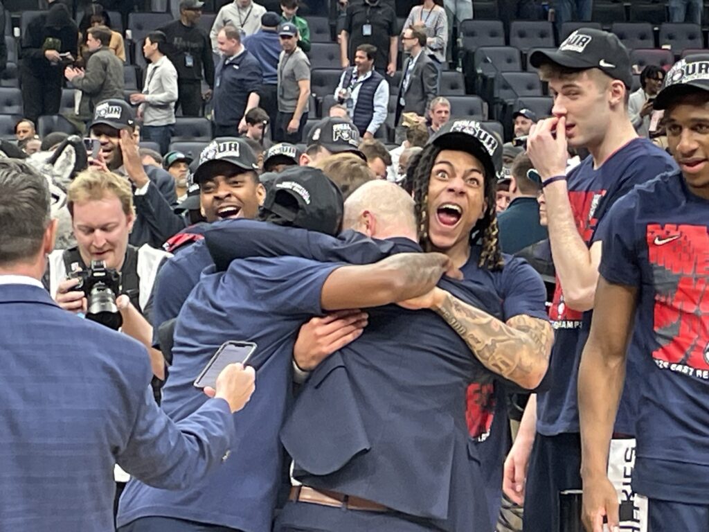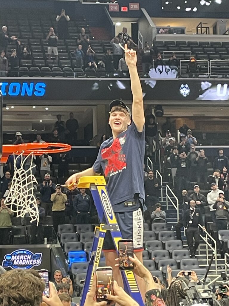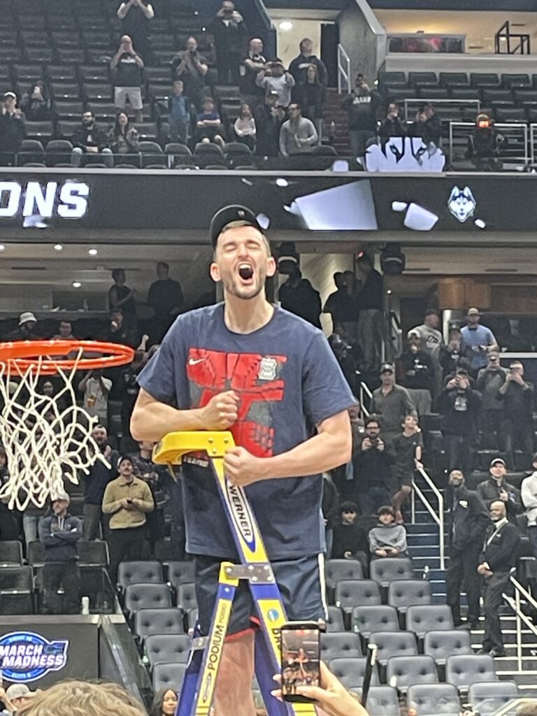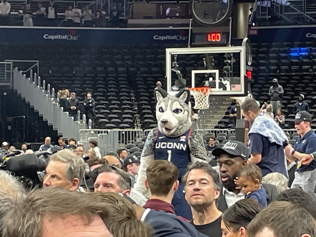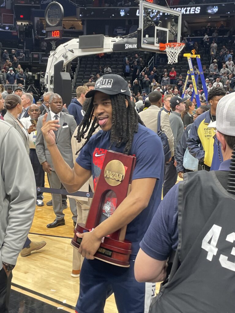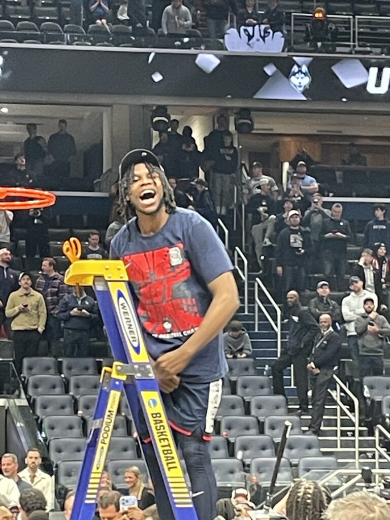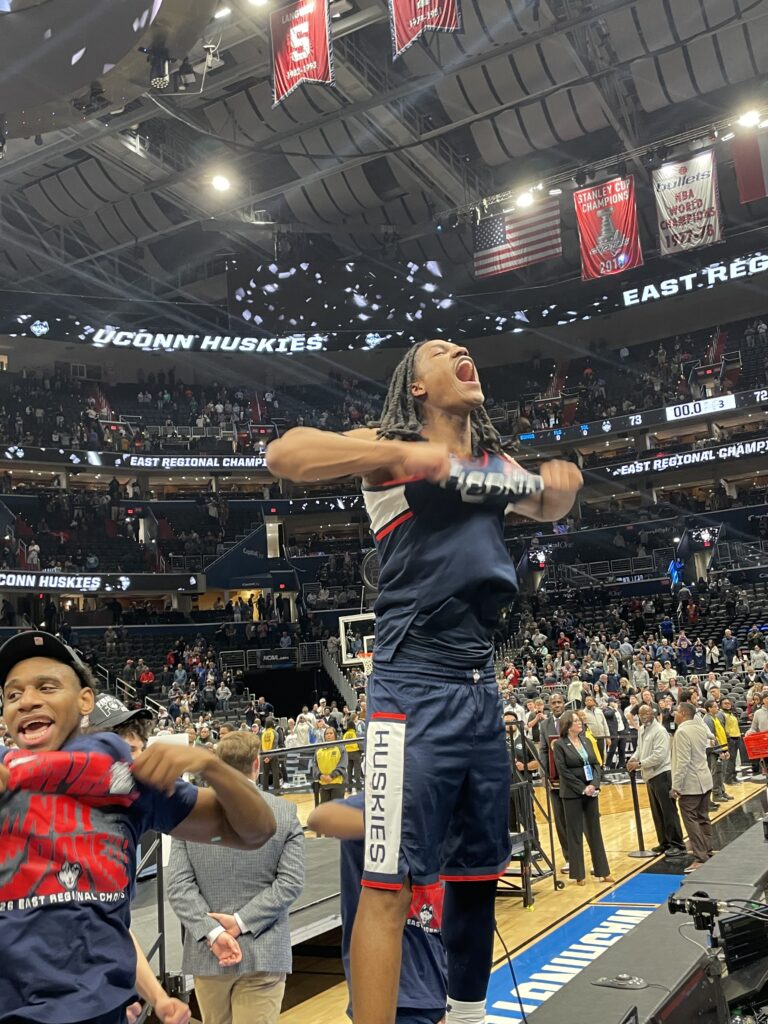 Silas Demary Jr. seemed to be having the most fun of anyone. He never won an NCAA tourney game during his time at Georgia, but thanks to his pass deflection that led to the game-winning shot he still has never lost at NCAA tourney game during his time in Storrs: