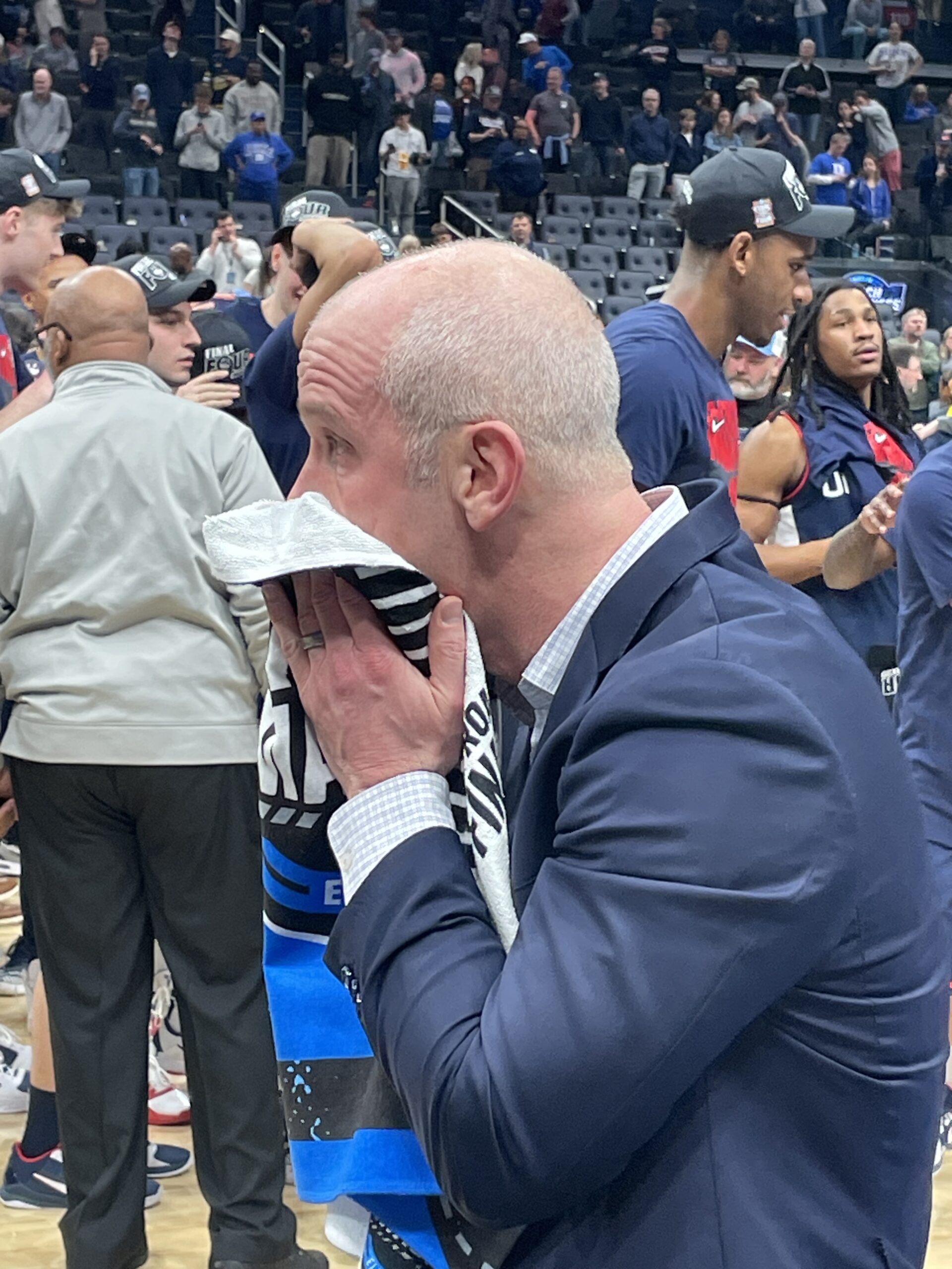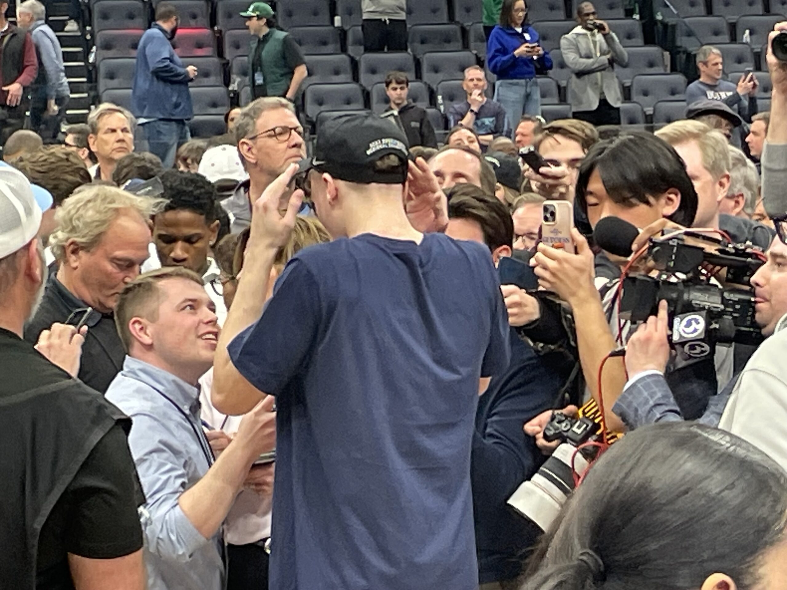 The players were beseiged by the media looking for a sensational sound bite after 1 of the most exciting finishes in the history of the Elite 8: